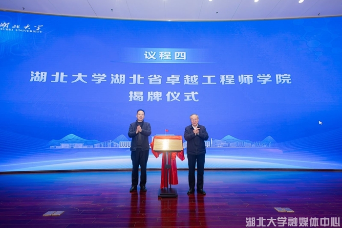 谢红星、史新华为湖北大学湖北省卓越工程师学院揭牌,正式启动学院建设。