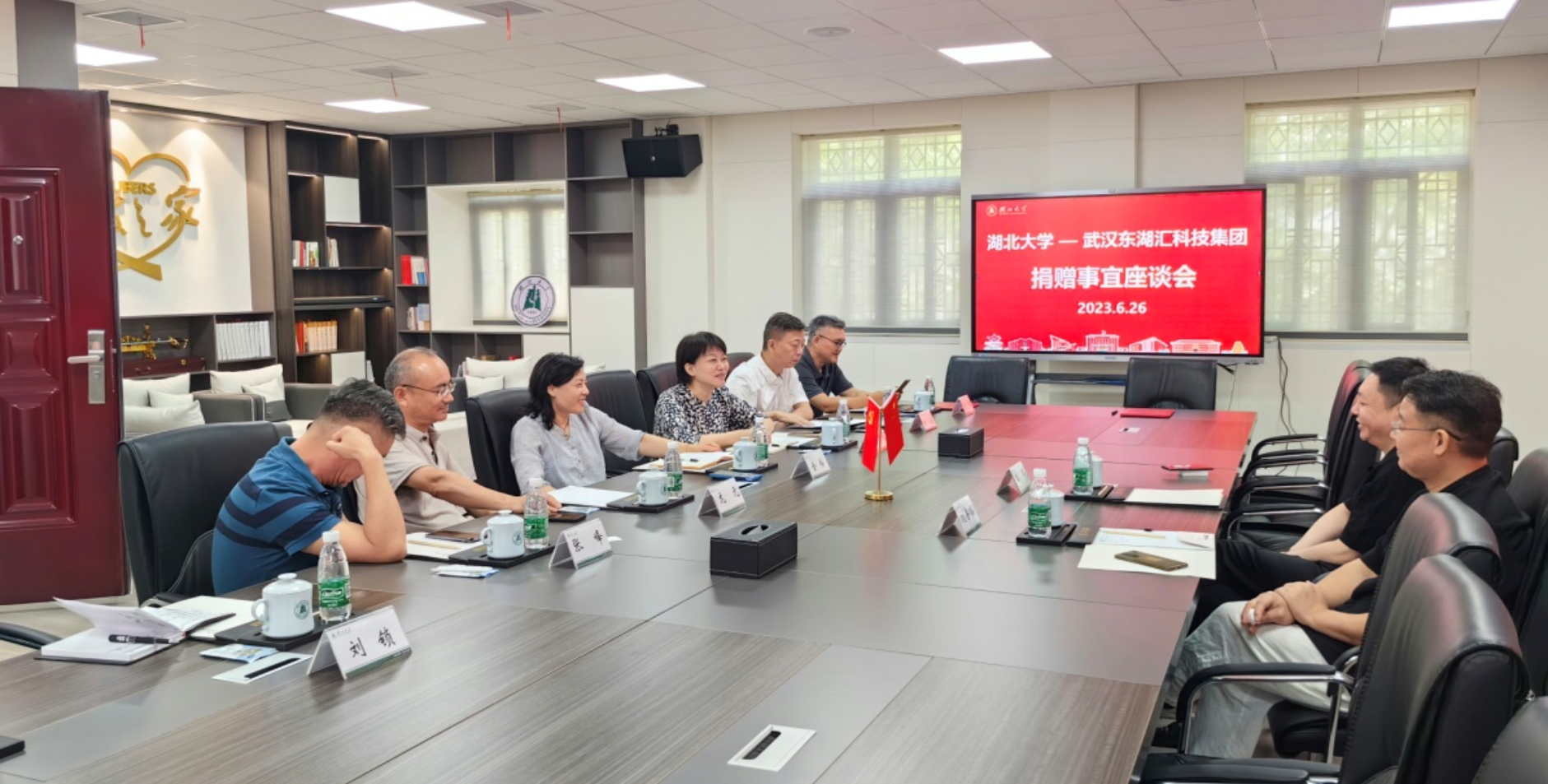 6月26日,99级市场营销专业校友、武汉东湖汇科技集团有限公司董事长李晖校友一行回访母校,洽谈捐赠合作事宜并做客校友之家。合作发展处处长、校友总会秘书长金梅,艺术学院党委书记叶秀娟,湖北大学城市创意与设计研究院院长龙元等与李晖校友一行座谈交流。